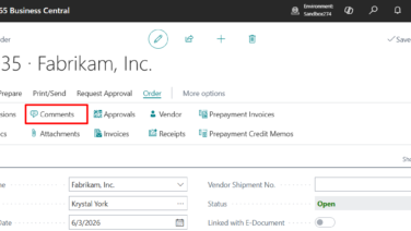 Dynamics 365 Business CentralDynamics 365 Business Central: Copy Comments from Vendor to Purchase Document – Customization