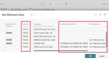 Dynamics 365 Business CentralBusiness Central 2026 release wave 1 (BC28): Filter receipt and shipment lines to quickly find documents you want to invoice (New filters on the Get Receipt Lines, Get Shipment Lines, and Get Service Shipment Lines pages)