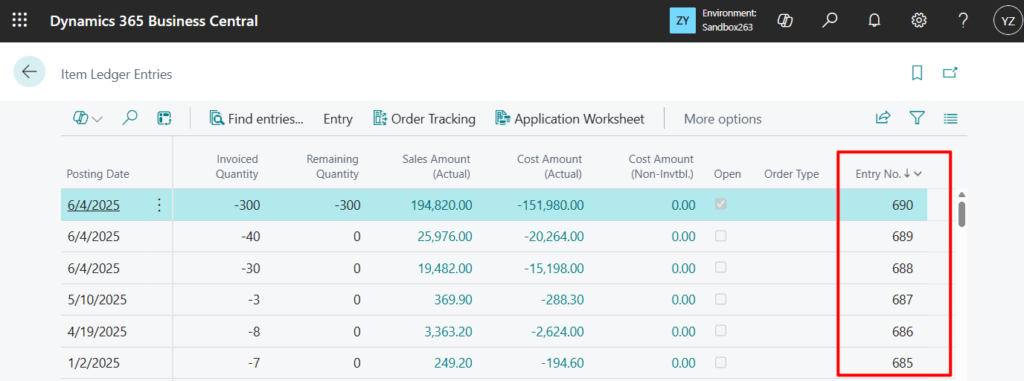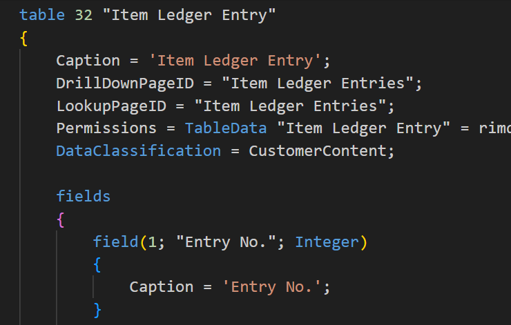 For example, the Item Ledger Entry (32) table: