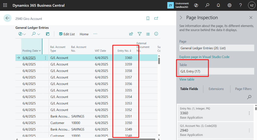 And the G/L Entry (17) table: