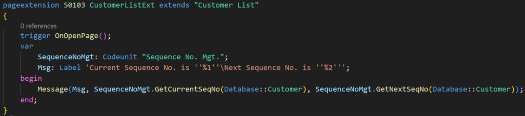 There’s nothing wrong with this approach, but there’s actually another standard pattern to do it. We can simply use codeunit 9500 “Sequence No. Mgt.”.