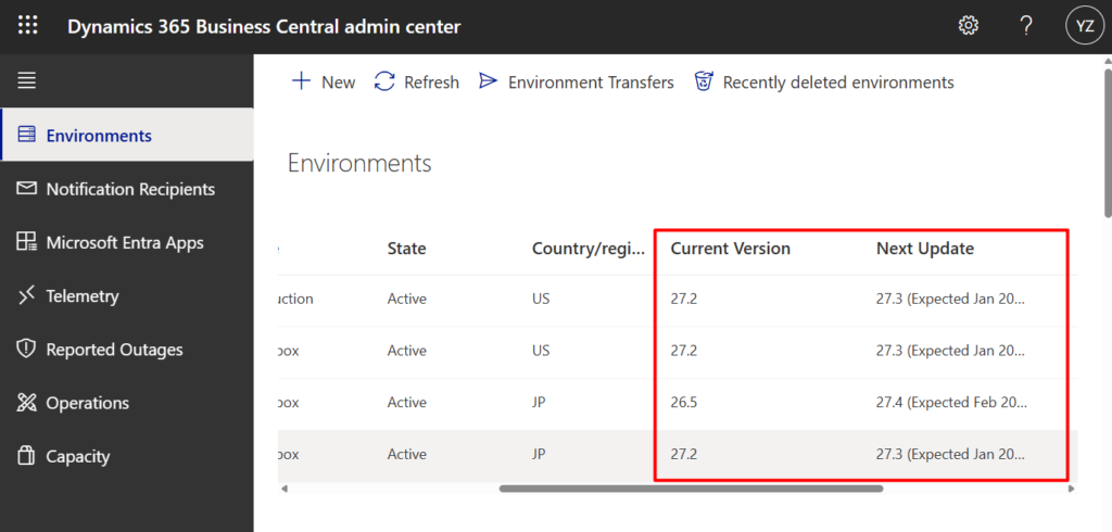PS: In the Business Central administration center, only the <major>.<minor> version number for the application is used to administer environment updates.