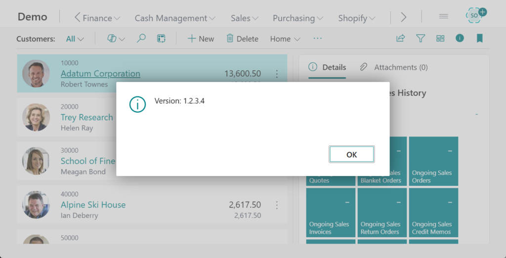 4. Business Central 2025 wave 2 (BC27): App version in “Copy error details”/”Share details via”