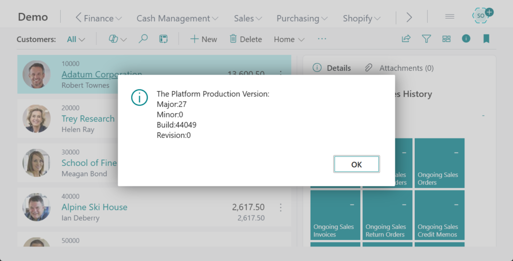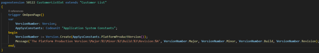 More details: How to get current platform version number via AL (Using codeunit 9015 “Application System Constants”)