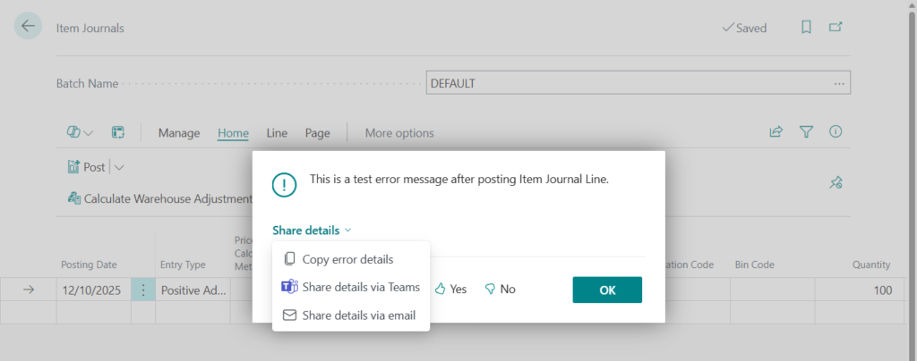 "Item Jnl.-Post Batch"(CodeUnit 23).OnRun(Trigger) line 6 - Base Application by Microsoft version 27.2.42879.44906