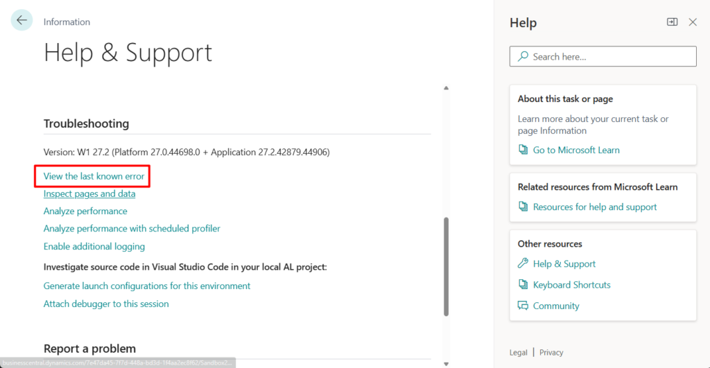 If you want to confirm this in BC, you can check it through the “View the last known error” feature on the Help & Support page.