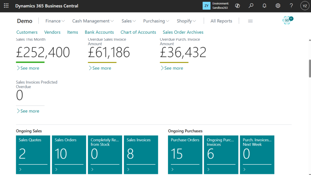 The Role Center is the user’s entry point and home page for Dynamics 365 Business Central.