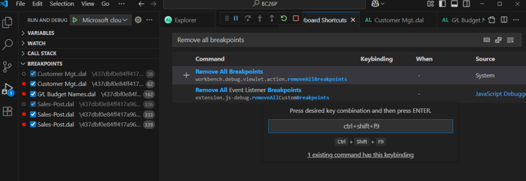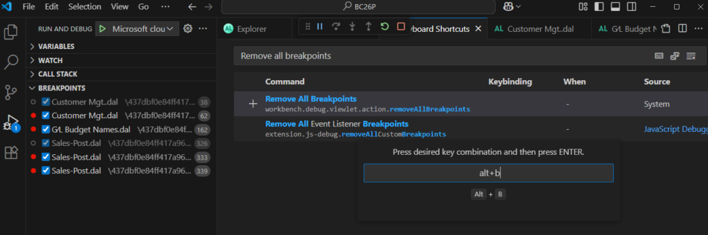 Dynamics 365 Business Central: How to quickly clear/remove all breakpoints in VS Code