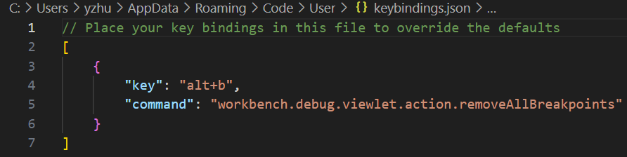 But we can add a shortcut to remove all breakpoints in VS Code. Choose File -> Preferences -> Keyboard Shortcuts