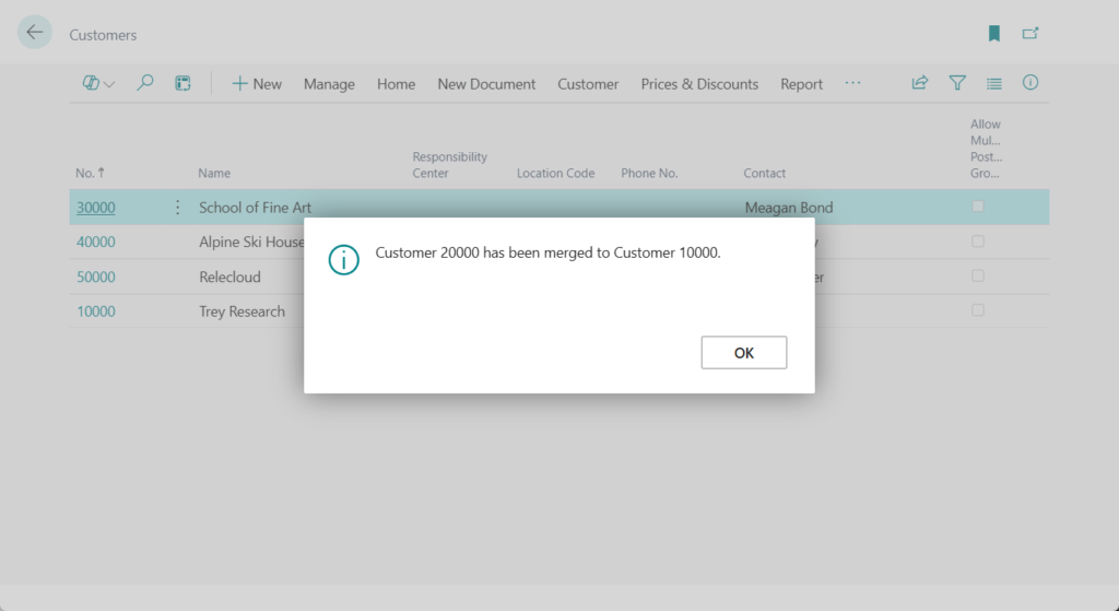 Customer 20000 has been merged to Customer 10000.