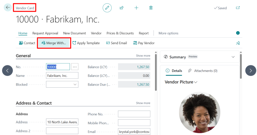 1. Merge With feature on the Vendor Card page and Contact Card page:
