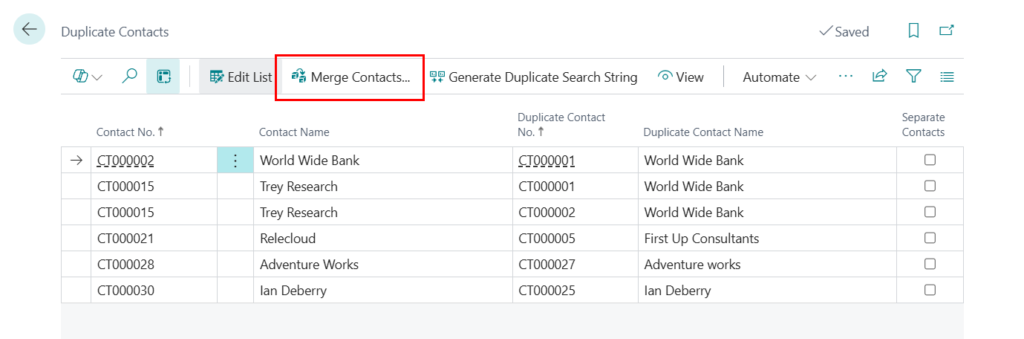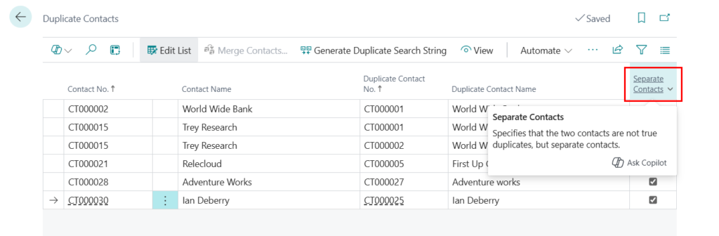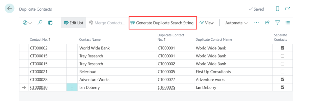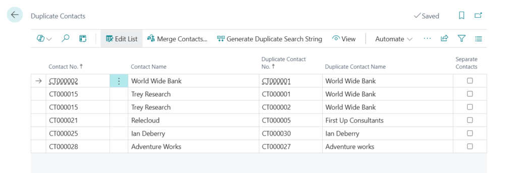 Dynamics 365 Business Central: Search for duplicate contacts (automatic and manual)
