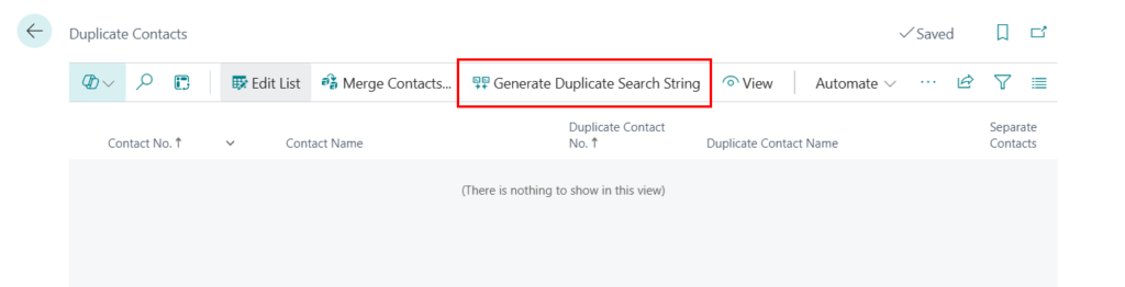 In addition, there is no delete button on this page. If you need to clean up the generated records, you can execute the Generate Duplicate Search String action again.