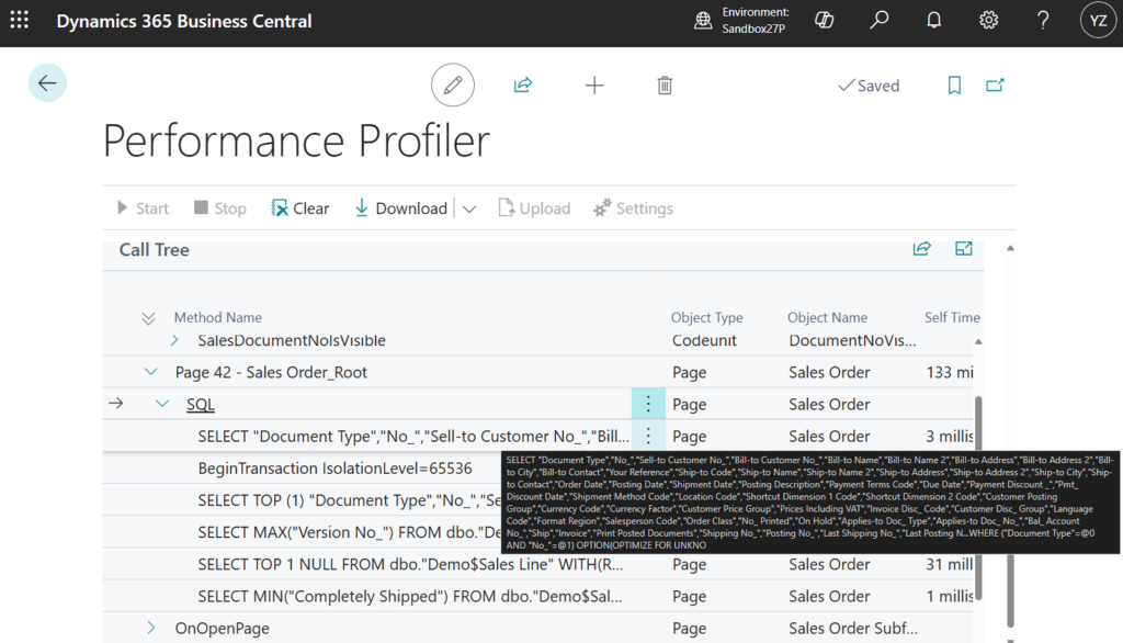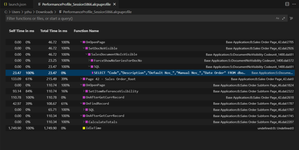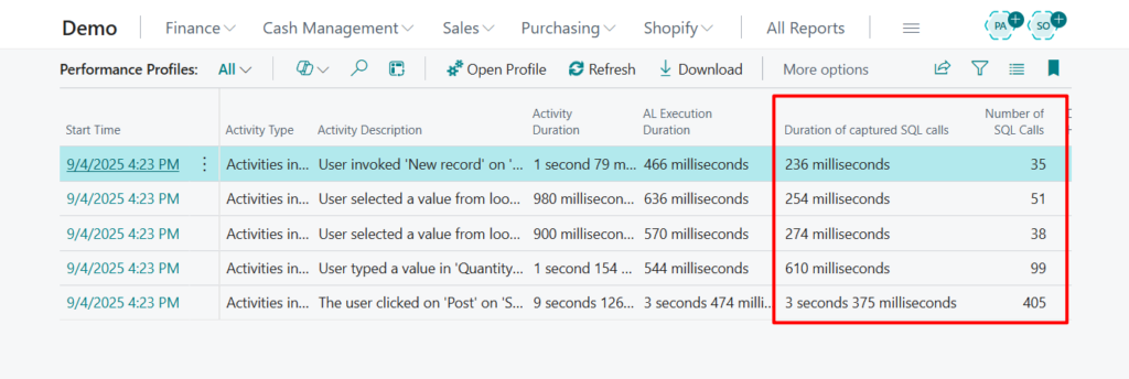 With this wave (BC27), Microsoft has enhanced this feature again. You can now see which calls are made to SQL during a performance profile, and therefore better assess whether bad performance is due to AL code inefficiencies or resulting SQL calls.