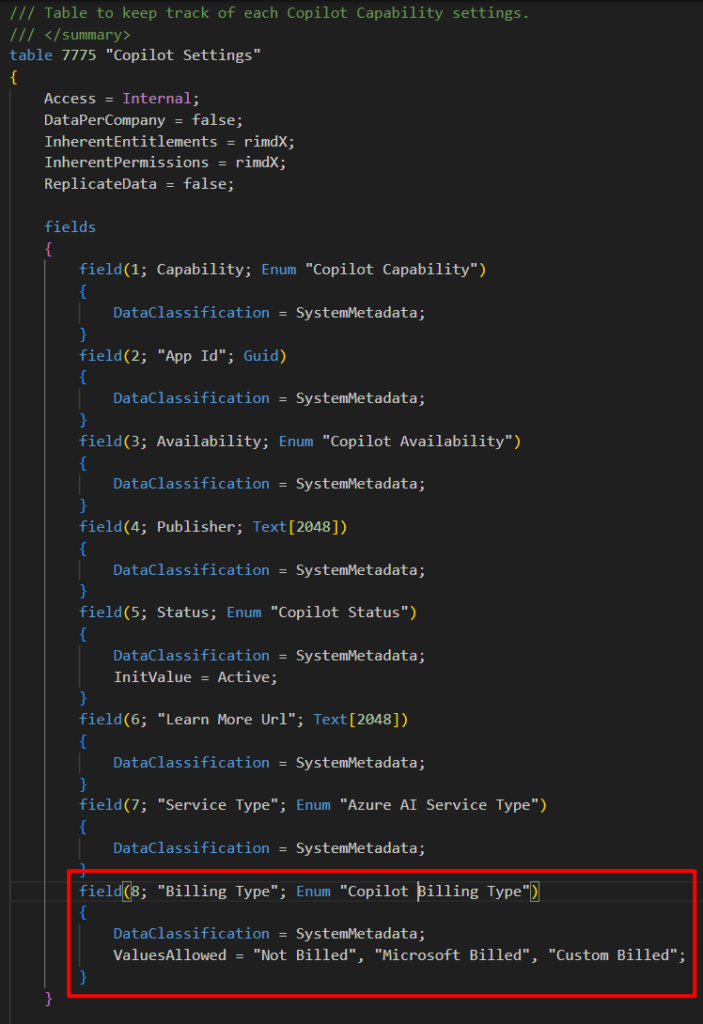 | Microsoft Billed | The Copilot Capability is billed by Microsoft. |