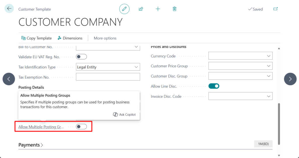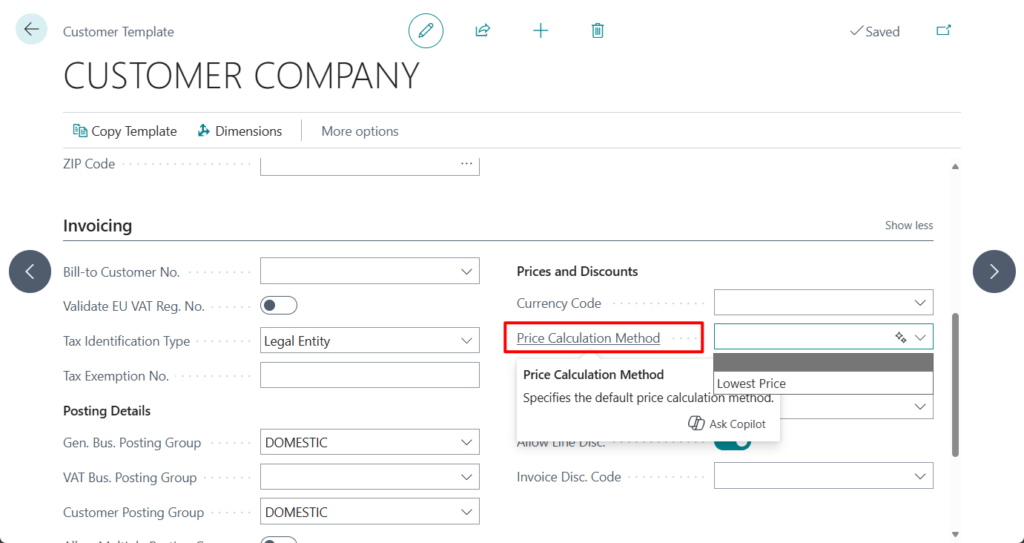 Allow Multiple Posting Groups and Price Calculation Method fields