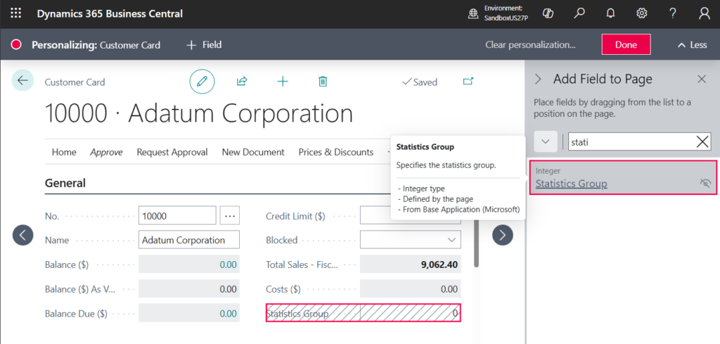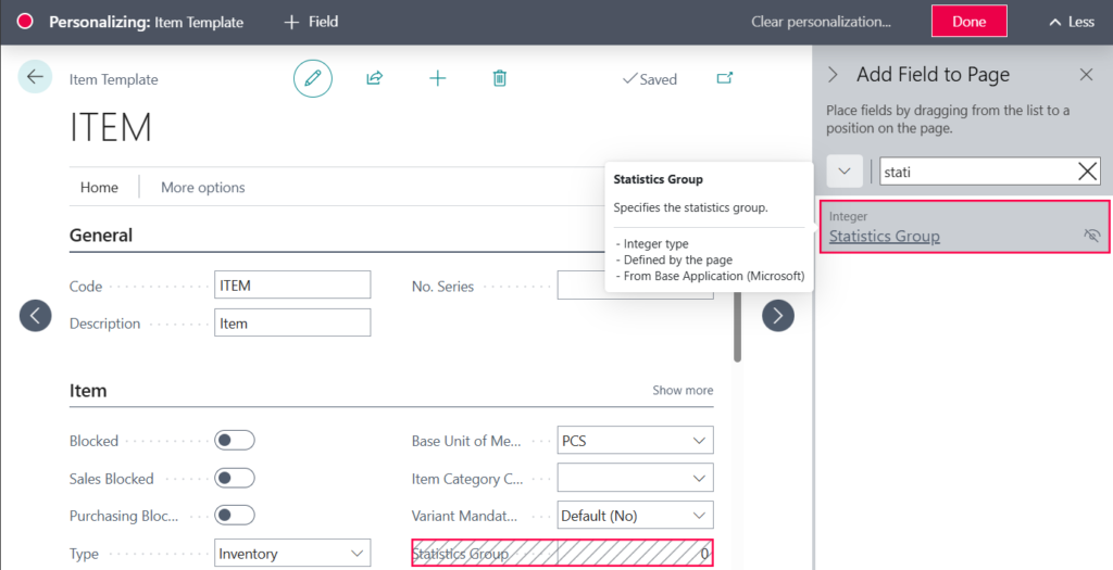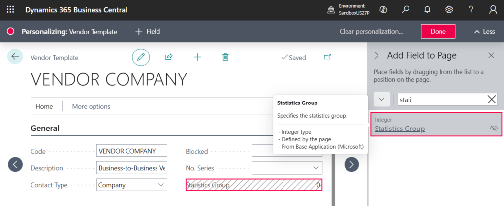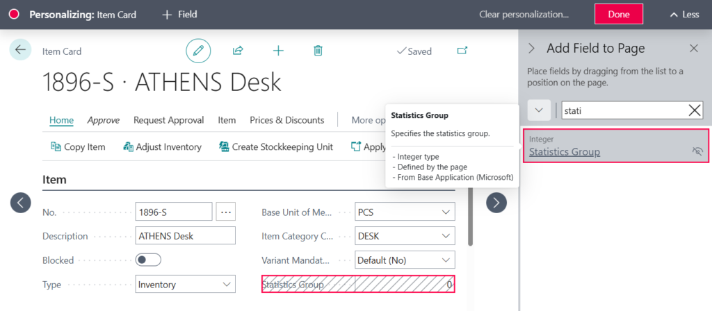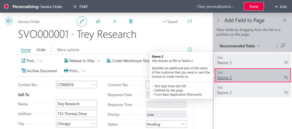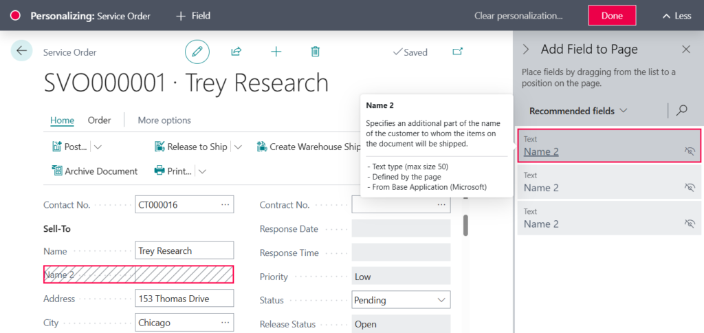 - Business Central 2021 wave 2 (BC19): Add additional columns (fields) through personalization in various pages to gain more insight