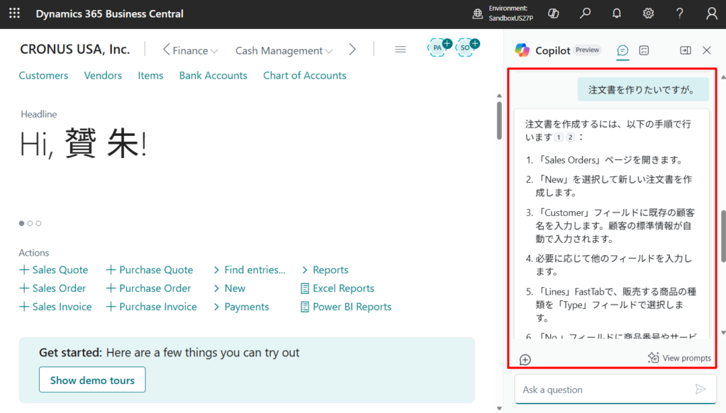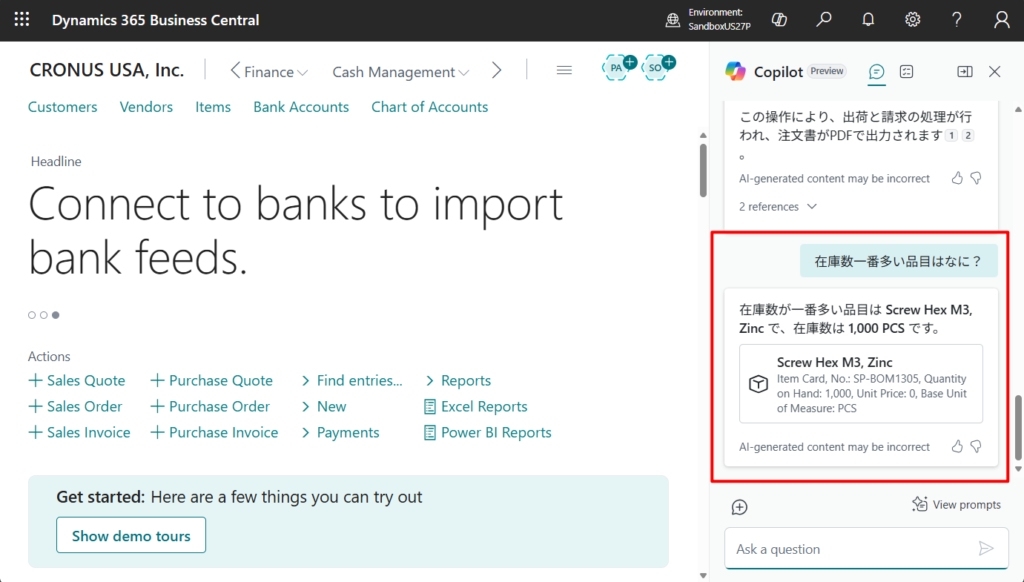 Microsoft Copilot is an AI-powered assistant that helps spark creativity, boost productivity, and eliminate tedious tasks. By chatting with Copilot in Business Central, you can ask questions and find business data using natural language. Here’s what you can do:
