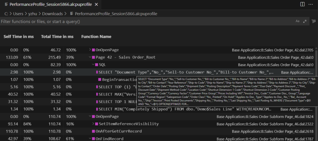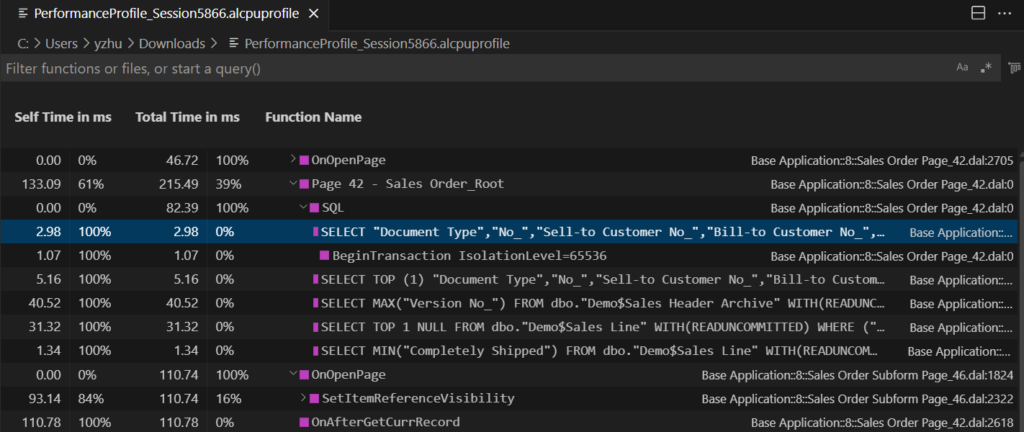 With this wave (BC27), Microsoft has enhanced this feature again. You can now see which calls are made to SQL during a performance profile, and therefore better assess whether bad performance is due to AL code inefficiencies or resulting SQL calls.