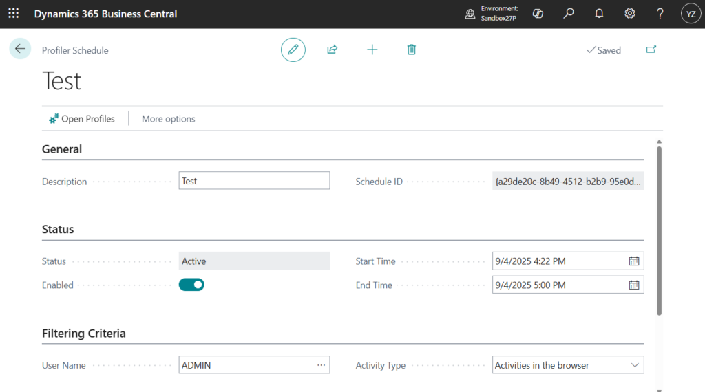 And in Business Central 2024 wave 2 (BC25), in addition to the existing interactive way of capturing a performance profile – by starting the profile, performing repro steps in the client, stopping the profiler and then analyzing the results – a new rule-based scheduling mode for capturing profiles in the background is added.