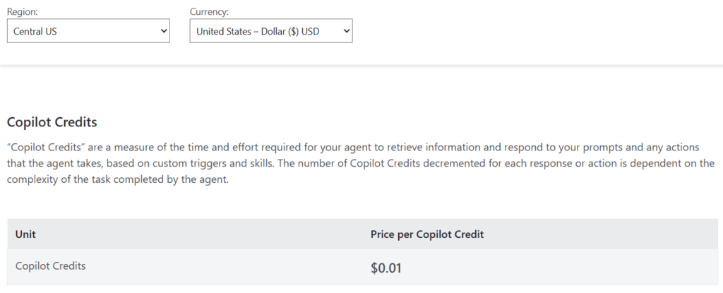 - Pay-as-you-go: $0.01 per Copilot Credit.