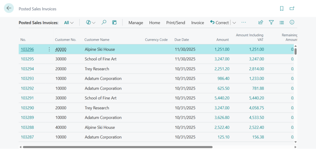 - Posted sales invoices