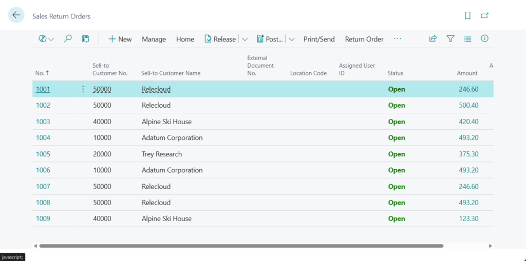 - Sales return orders