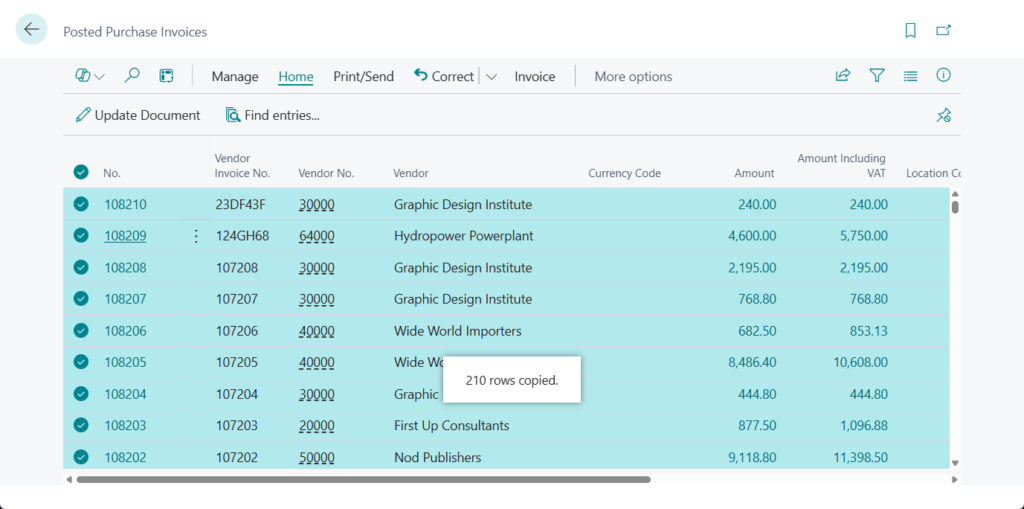 - Posted purchase invoices