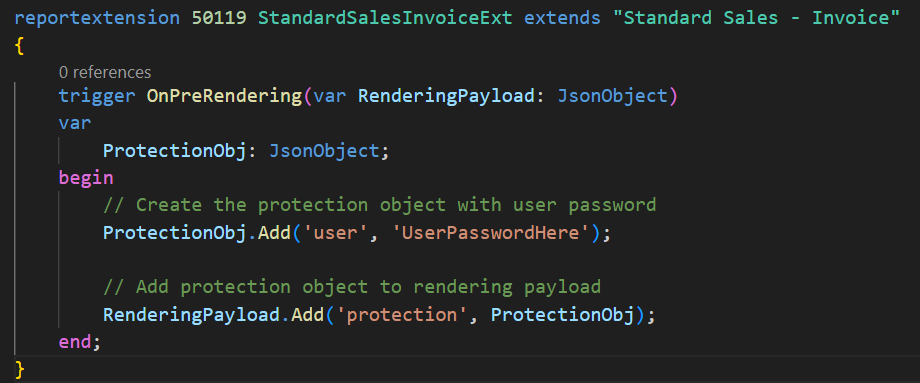 Can a password be added to a report exported from Business Central? Yes. We can use OnPreRendering (Report) trigger.