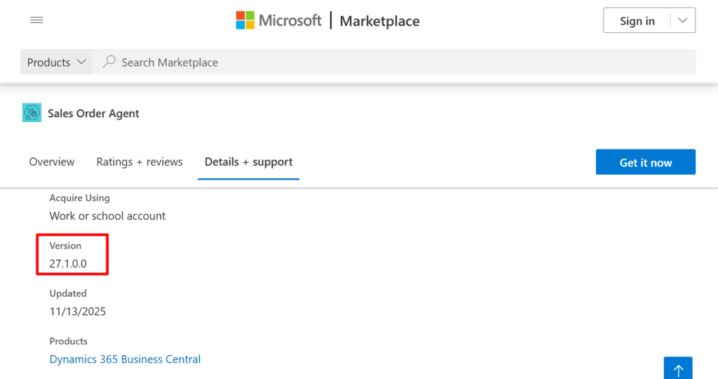 Then you can see the version. If the version in the Marketplace is higher → an update is available. This approach works for some partner extensions, but for Microsoft standards, the following situation will occur, the version number only shows up to 27.1 (<major>.<minor>).