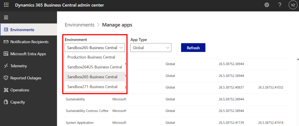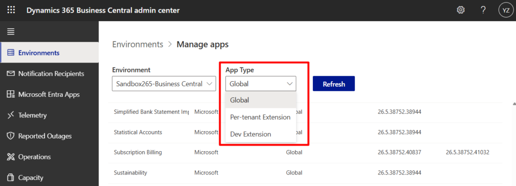 PS: Business Central 2025 wave 1 (BC26): Managing PTE/DEV Apps in admin center