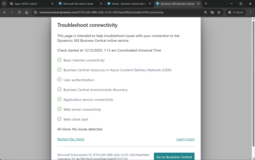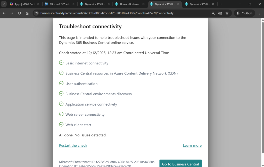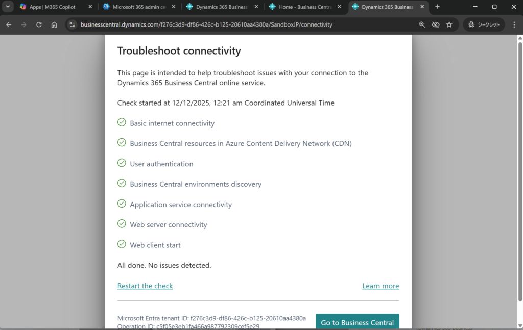Below are the results for some test countries/regions, primarily tested through the Troubleshooting Connectivity page. More details: Dynamics 365 Business Central: Troubleshoot connectivity