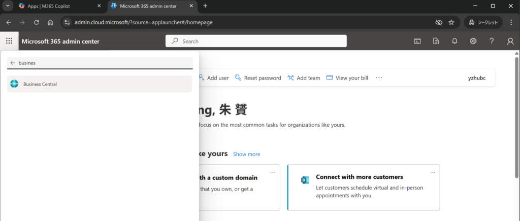 In mainland China, users can also sign in to Microsoft 365 Home and see Business Central listed there.