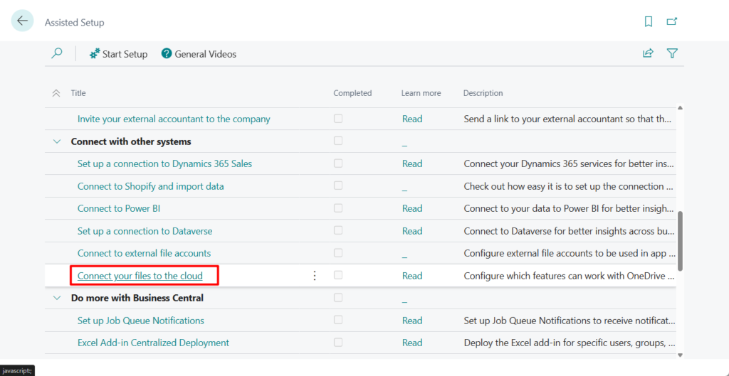 Or choose Connect your files to the cloud in Assisted Setup page.