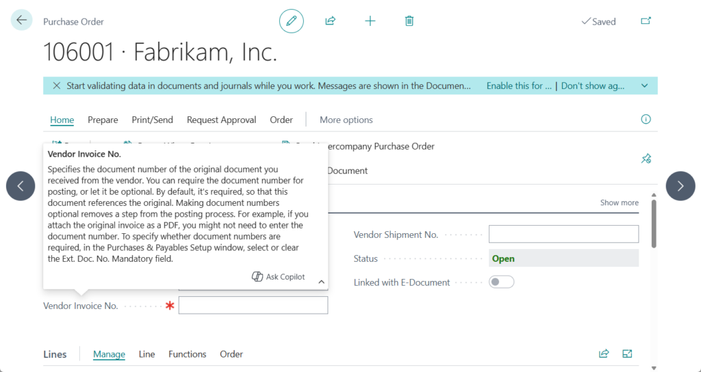 In Dynamics 365 Business Central: Set External Document No./Vendor Invoice No. as mandatory (Ext. Doc. No. Mandatory), we briefly discussed how to set External Document No./Vendor Invoice No. as mandatory. As mentioned briefly, Business Central does not validate whether external document numbers are unique or duplicated. If this kind of control is required, a small customization is necessary. In this post, I will share a simple solution.
