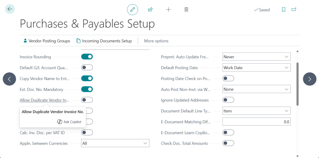 Caption = 'Allow Duplicate Vendor Invoice No.';