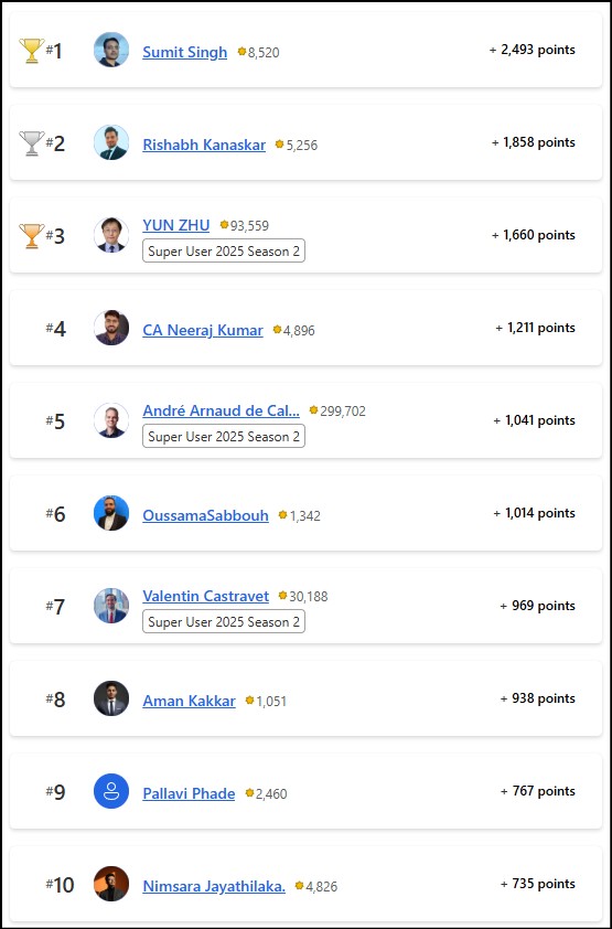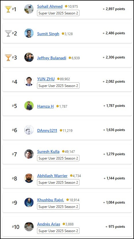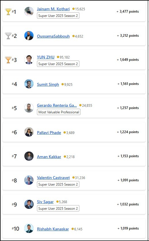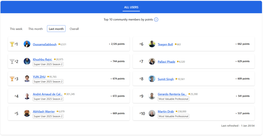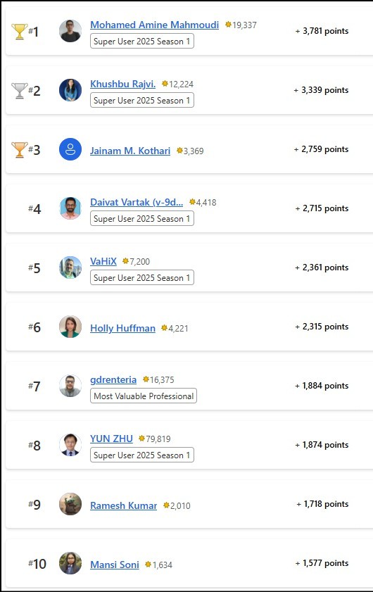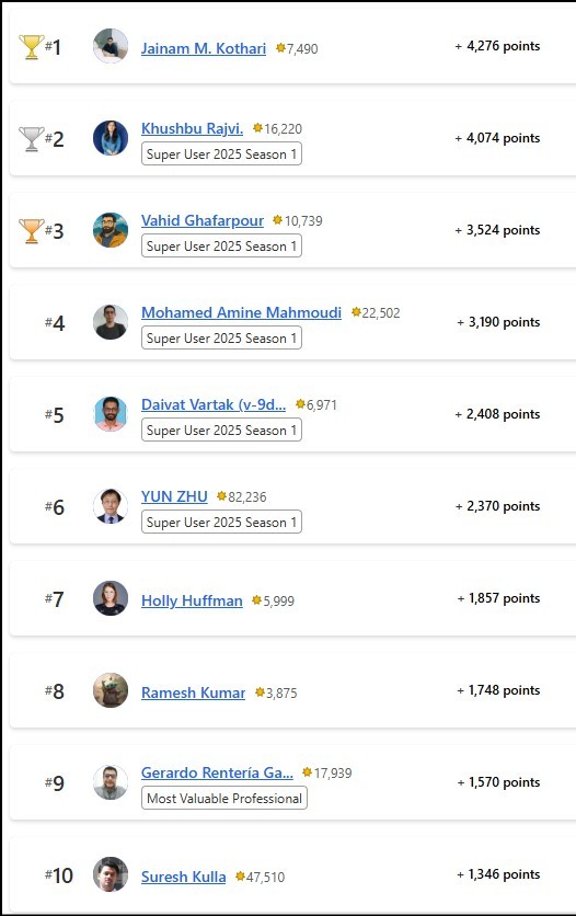 Congratulations to the January 2025 Top 10 community leaders!