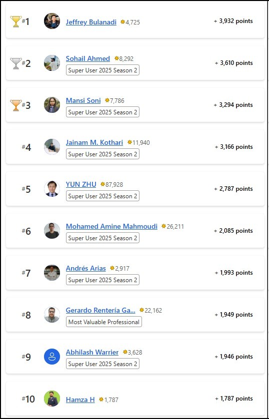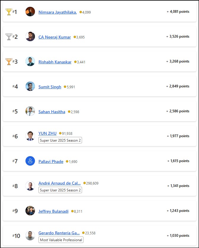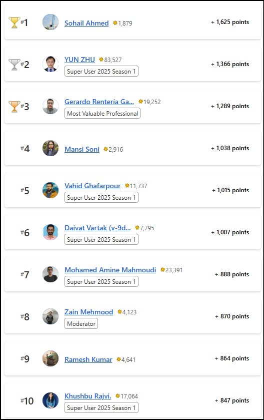 Congratulations to the October 2025 Top 10 Community Leaders!