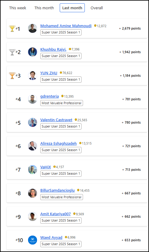 Congratulations to the September 2025 Top 10 Community Leaders!