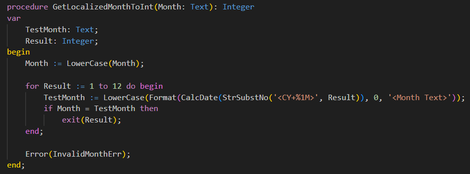 Dynamics 365 Business Central: How to convert Month Name (Text) to Month Number (Integer)
