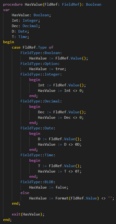 Today I would like to share another mini tip about Business Central, how to check if a Field has a value with a universal method in AL.