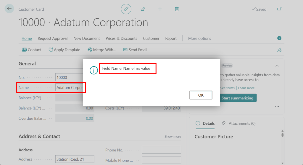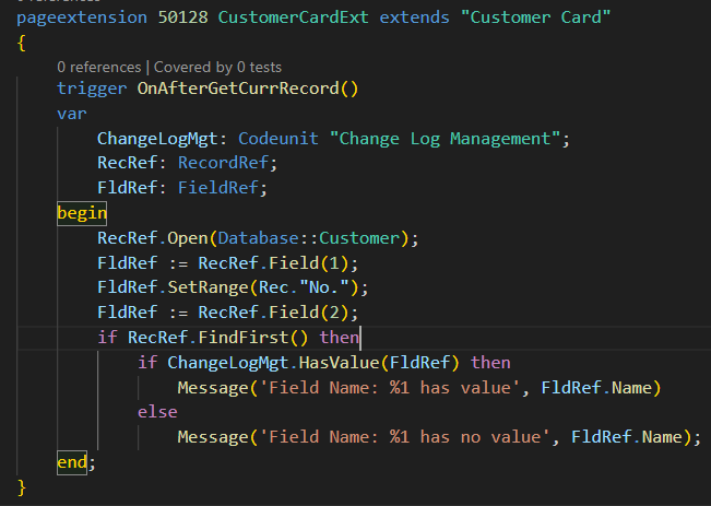 Consequently, all we need is to pass the FieldRef as a parameter. Let’s look at a simple example: Check if Customer Name is empty.