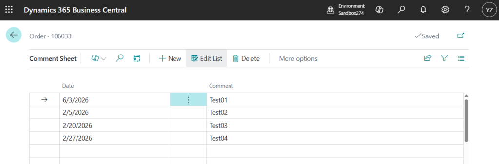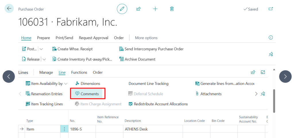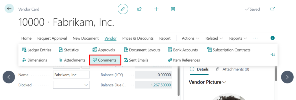As you might know, you can add extra information to G/L accounts, vendor card, or purchase orders to communicate exceptions or special agreements to other users. Practically all cards and document have a Comments action, which opens the Comment Sheet page where you can write or read comments.