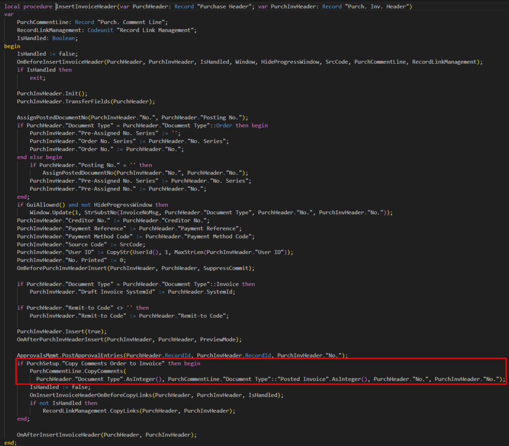 codeunit 90 “Purch.-Post” -> local procedure InsertInvoiceHeader