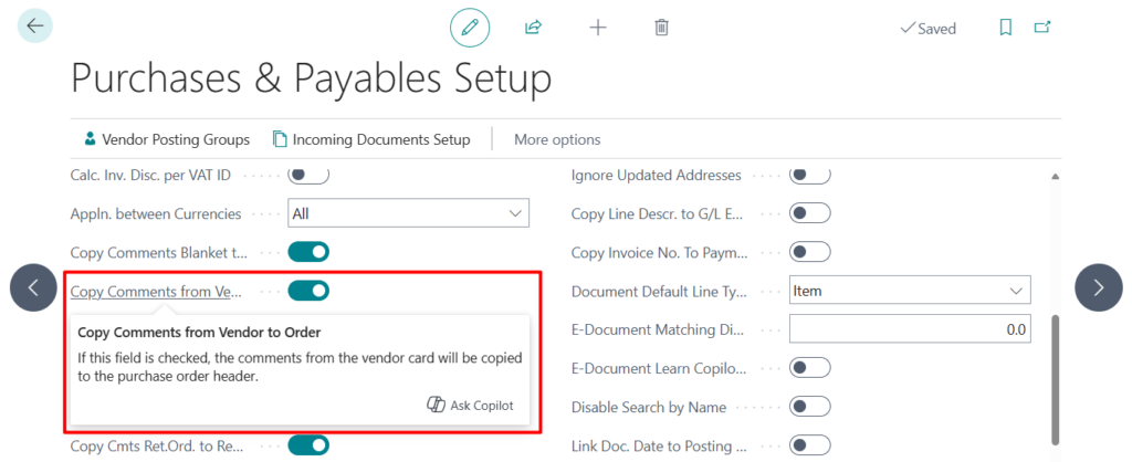 Today I would like to talk about how to copy Comments from Vendor to Purchase Document.