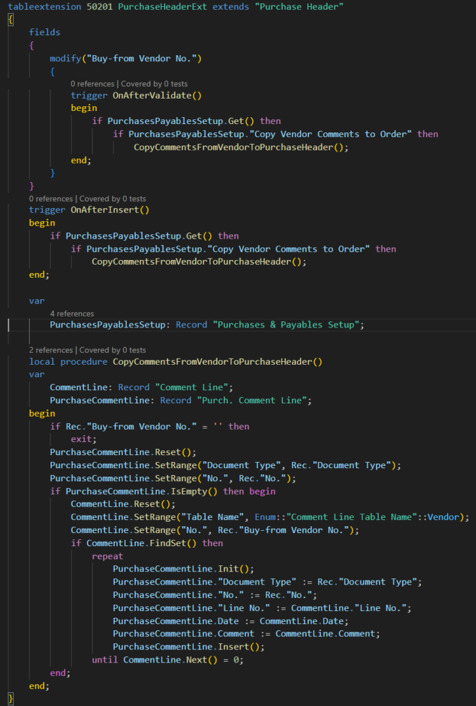 2. You can also put this processing in other events or triggers, but please note that because Vendor No. is not the primary key of Purchase Header, the system can create a Purchase Document without Vendor No., so do not only put it in the OnInsert trigger of the table.