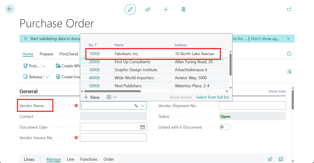 Let’s see more details. First of all, the table used in the vendor card and the table used in the purchase document are not the same table.