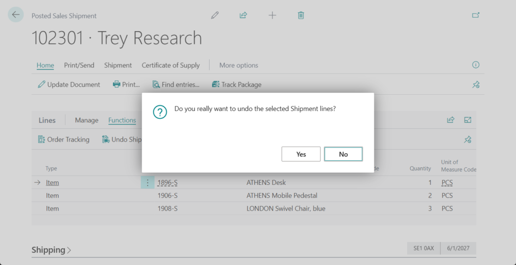 Undo Posted Sales Shipment Line: