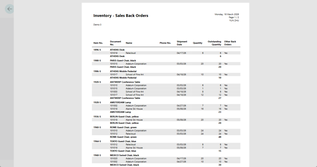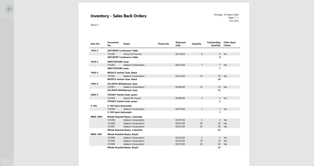 We’re enhancing the demo data for the Sales, Purchasing, and Fixed Assets modules to make it easier to demonstrate the reporting and analytics in those areas. The following lists briefly describe the enhancements in each area.