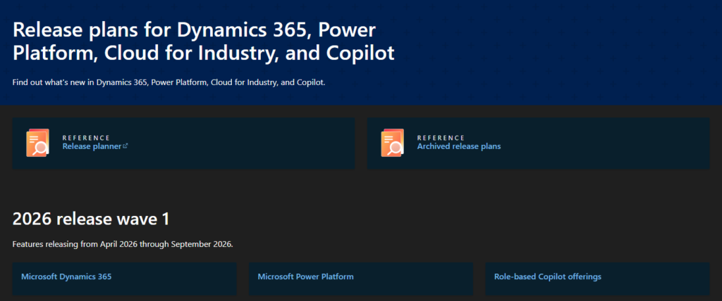 The 2026 release wave 1 plan covers all new functionalities that Microsoft plans to release to market from April 2026 to September 2026.